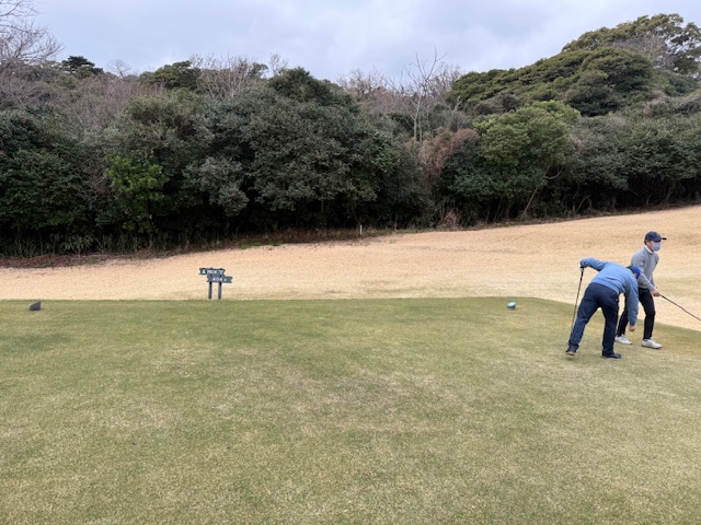 10番143yショートは、8アイアンで打つもチョロ。ボギー。見事な1オンからJ.Oさんが無難にパー。