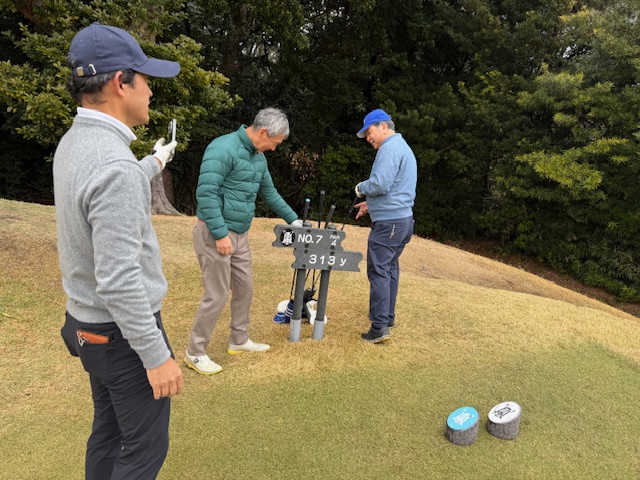 8番145yショートは、6アイアンで打つも左横へ。難なく寄せてパー。バンカーからナイスアウトのJ.Oさんもナイスパー。7mに1オンのS.Mさんも無難にパー。
