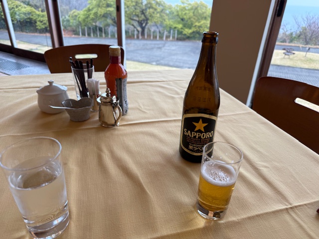 今日は和食レストランで黄金水をいただき、大島コースインから。