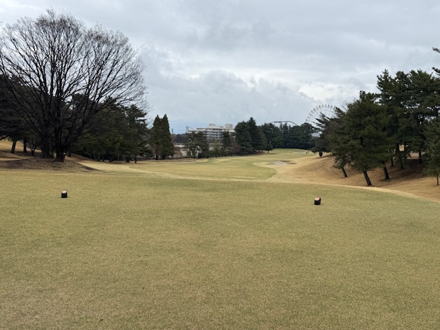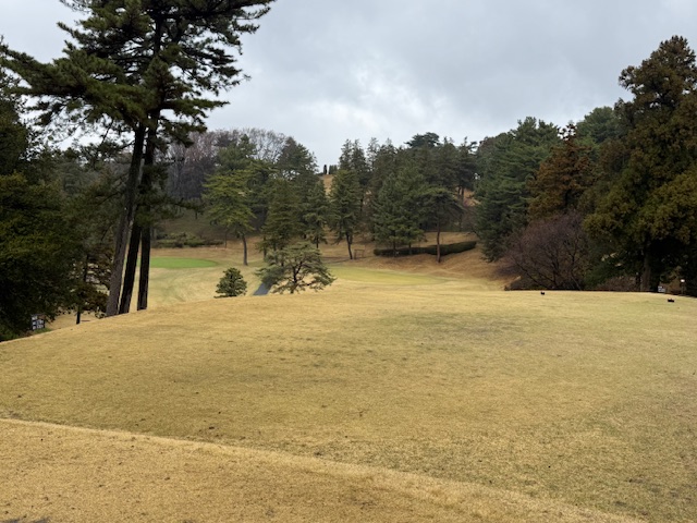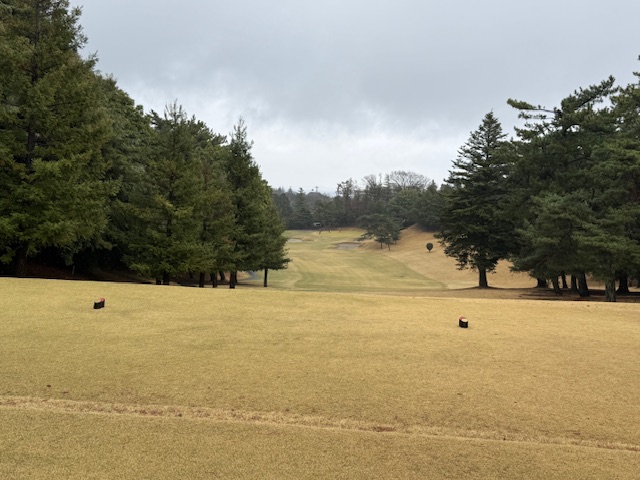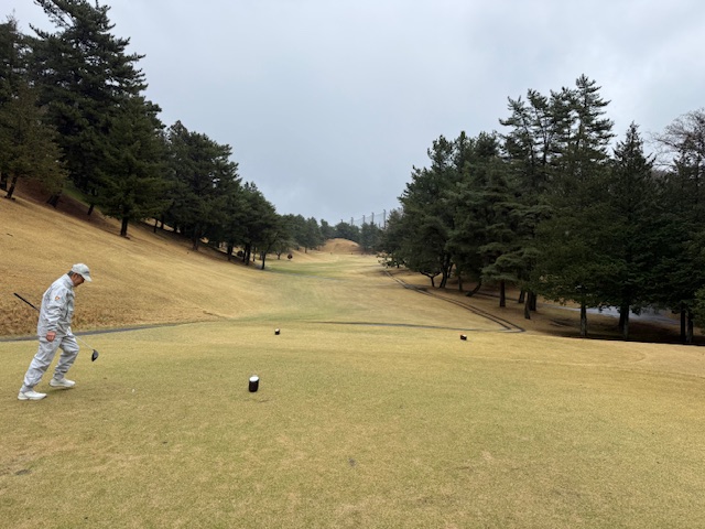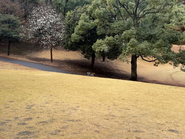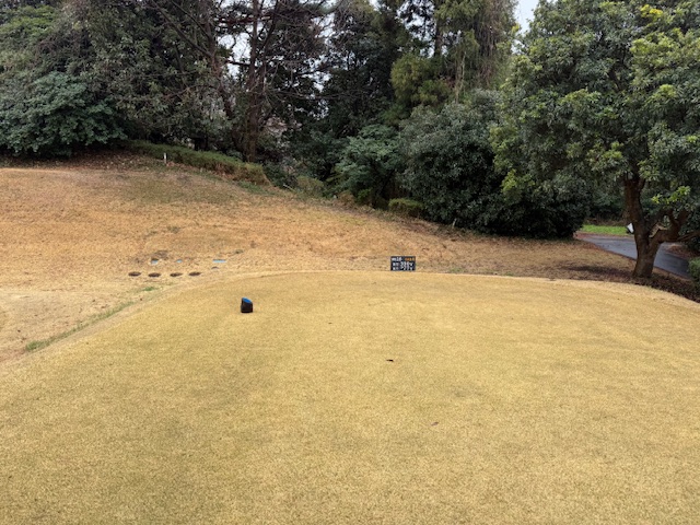 15番370y打ち下ろしミドルは、ドライバーは右へ。8アイアンで打つもちょいと右へ。ナイスアプでパー。