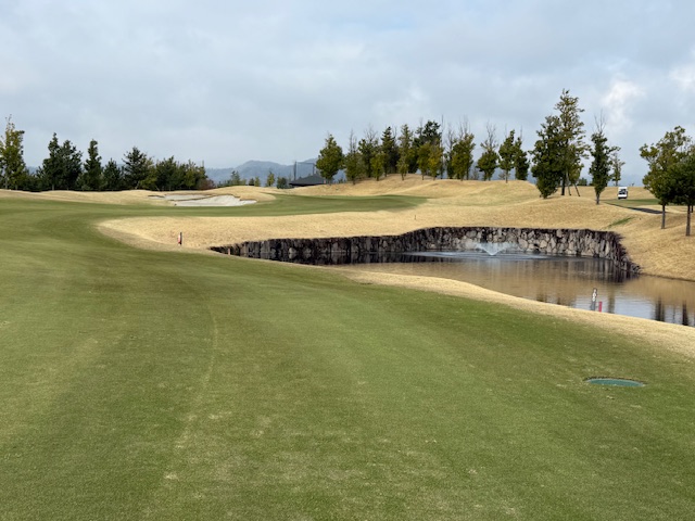 13番(4番)372y共有グリーンのミドルは、ドライバーは左へ。6アイアンでレイアップ。52度で3オン。ここからアホの3パンチダボで×。しっかり2オンさせたS.Mさんが無難にパーでベスト獲得。
