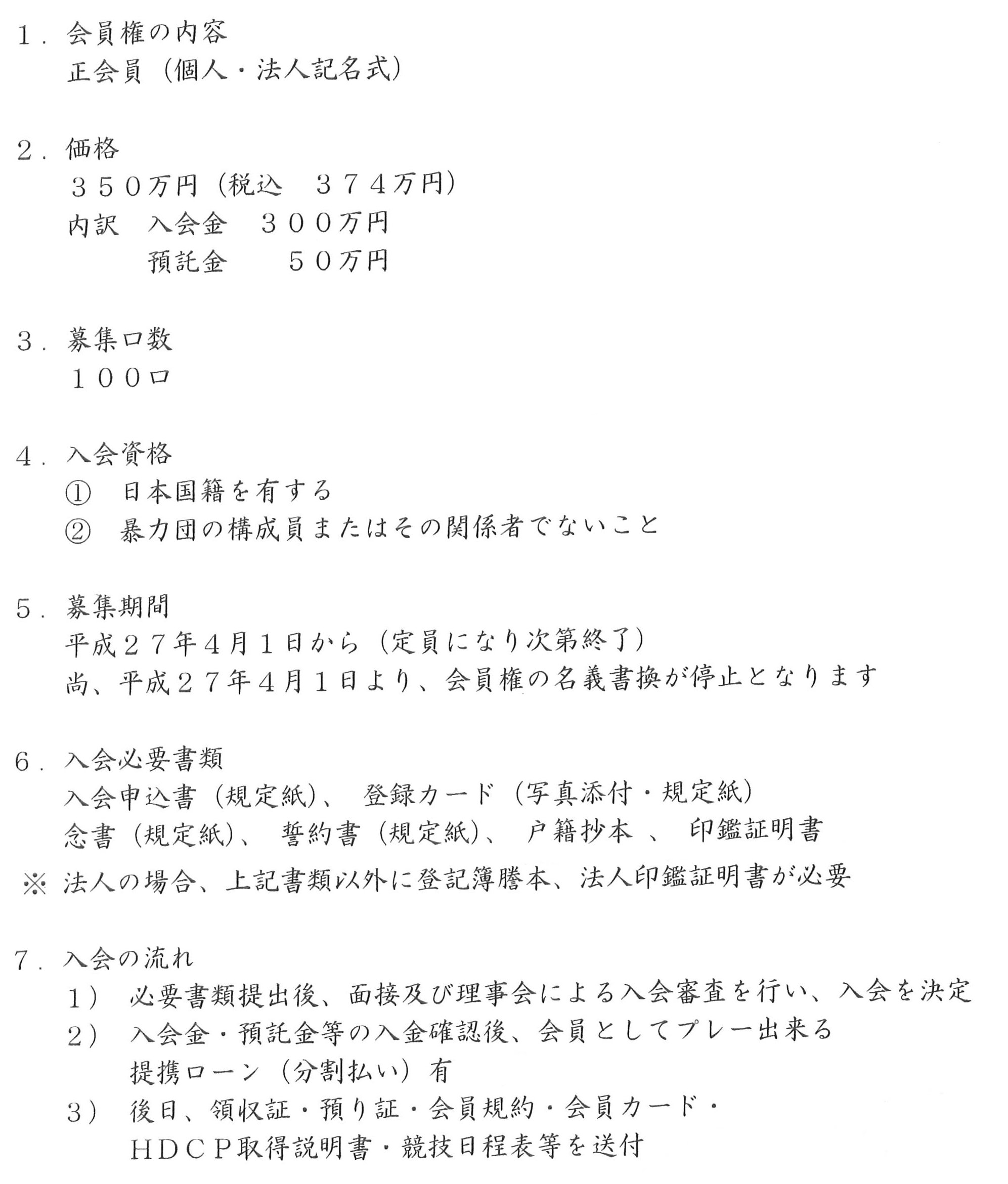 | 会員区分 | 会員種別 | 名義書換料(前) | 名義書換料(後) | |