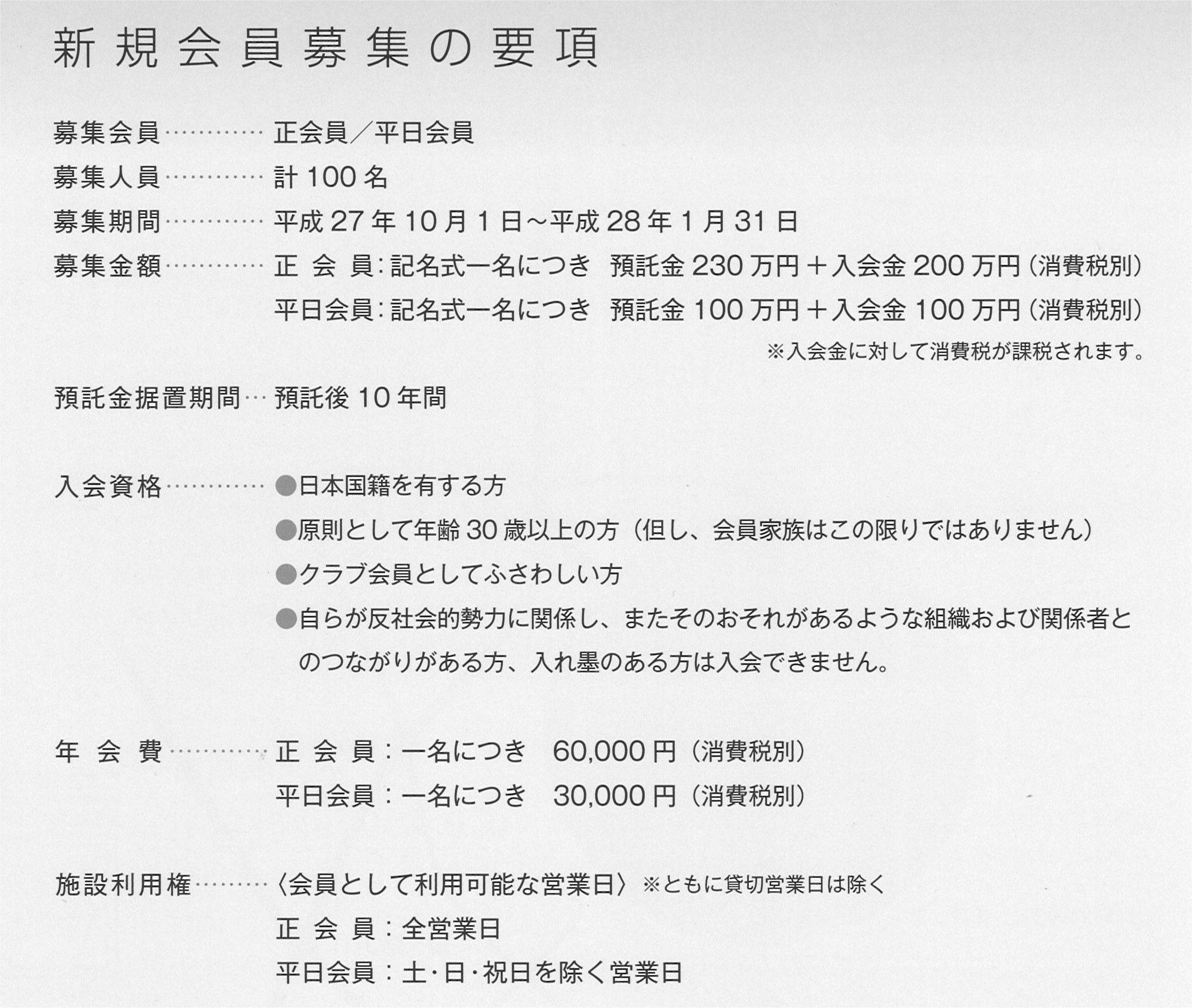| 会員区分 | 会員種別 | 募集人数 | 入会金 | |