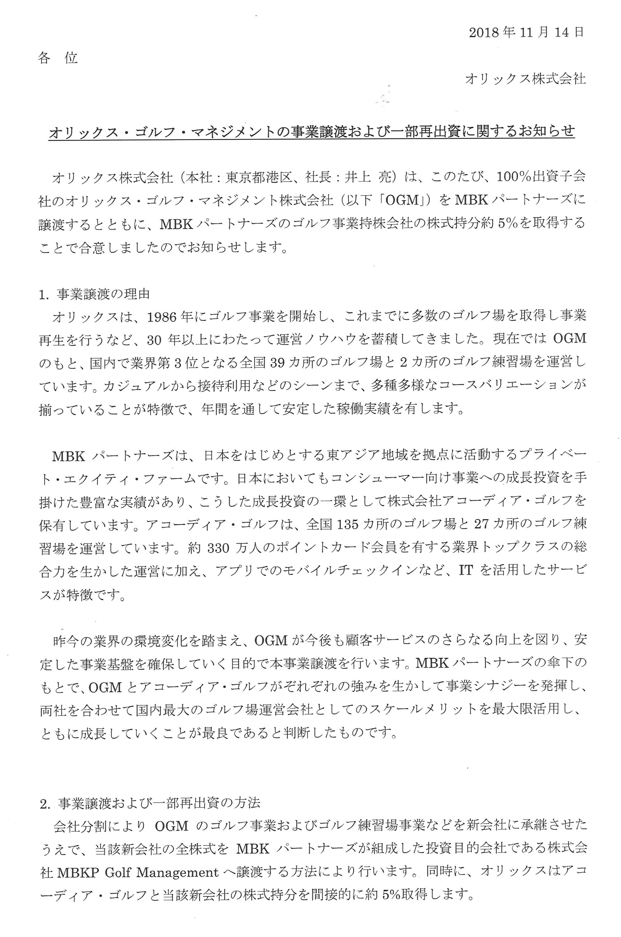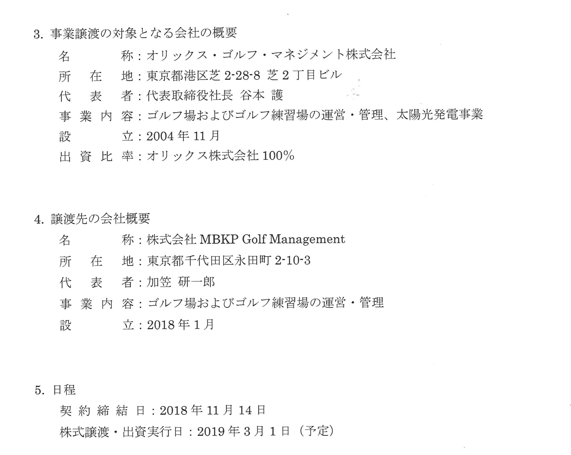 上記、HPによるとアンケートの結果は、債権者数5218名の内、2534名がオリックス・ゴルフ・マネジメント株式会社(OGM)を選定、パシフィックゴルフマネージメント株式会社(PGM)の980名、株式会社ジャパンゴルフインベストメント(JGI)の1704名を上回った。議決権額でも15億8938万円の内、OGMが7億1336万円余で、PGMの2億円余、JGIの6億円余を上回り、OGMが人数、債権額とも第1位順位となった。