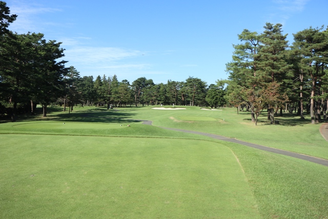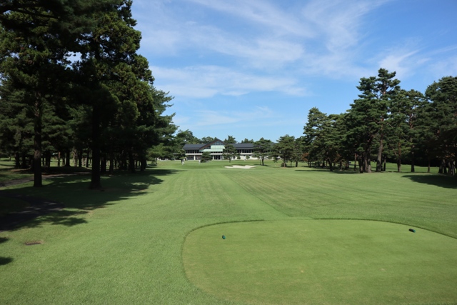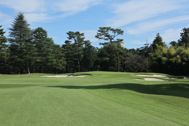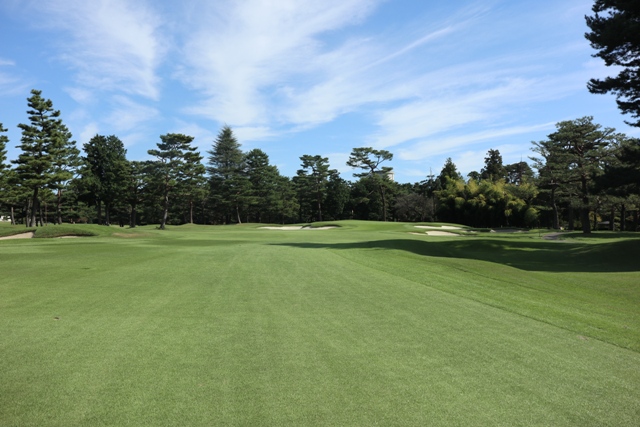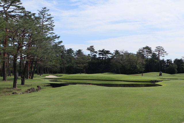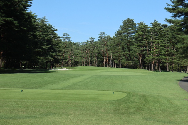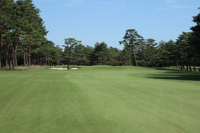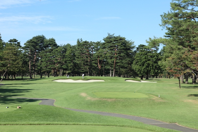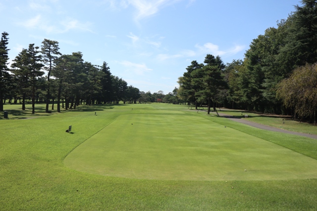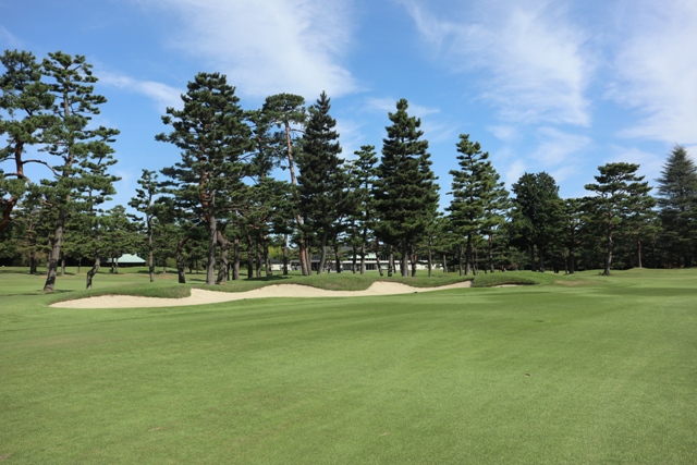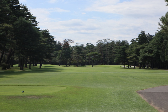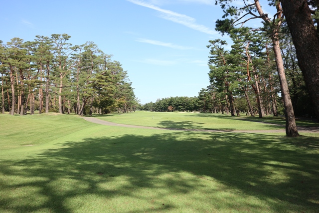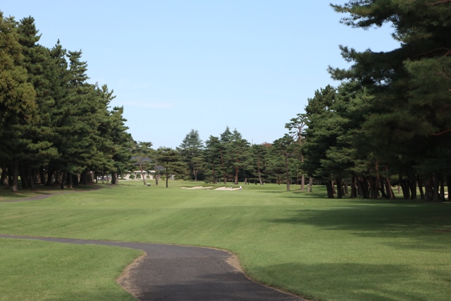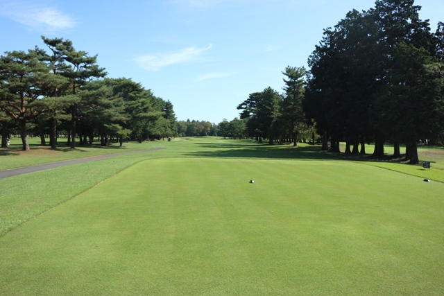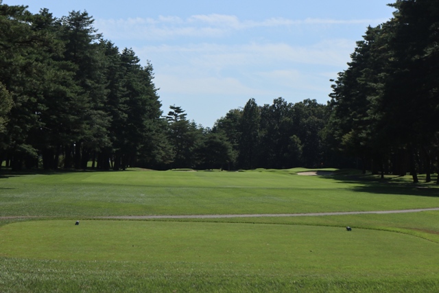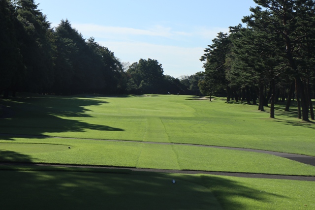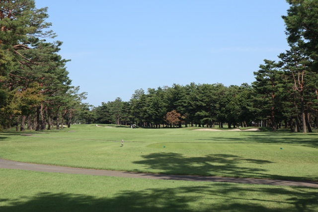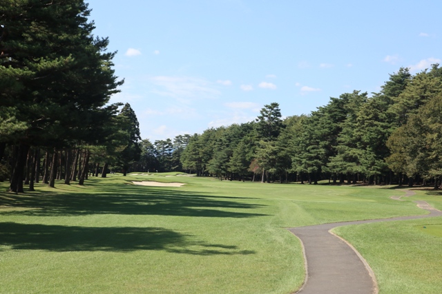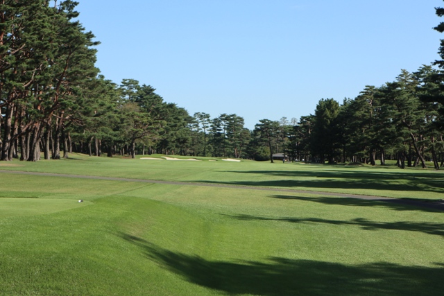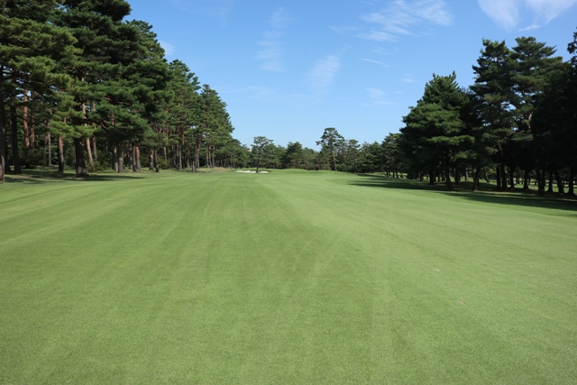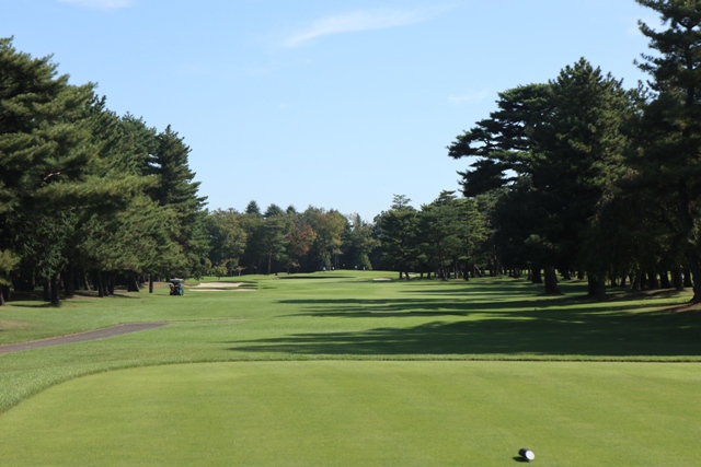 両サイドの松の木がコースをセパレートしていますが、ここの幅にティーショットが打てる技量が必要です。