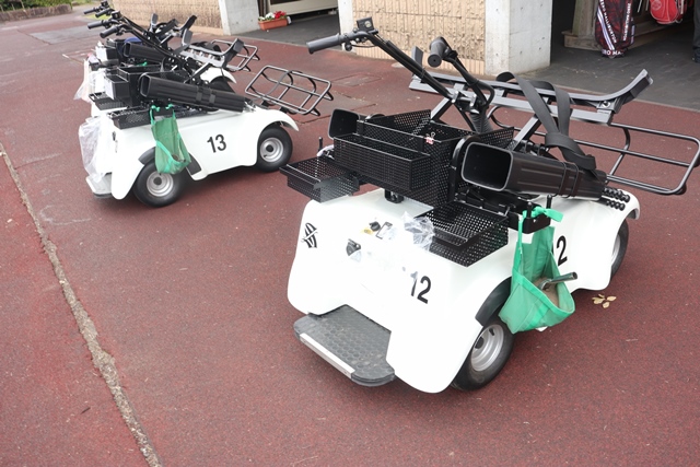 夏場対策として、キャディが立ち乗りカートになっておりました。