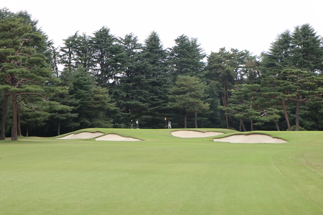 そして、砲台グリーンにバンカーです。アゴ高バンカーの連続です。
