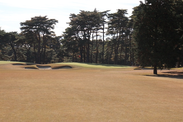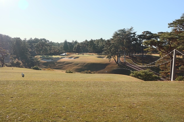 11番長いミドルは、谷を越えるし、右グリーンは狙いにくいです。グリーンの傾斜もあります。