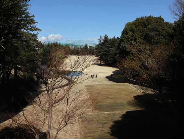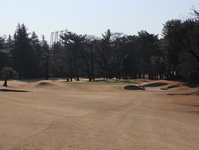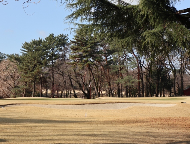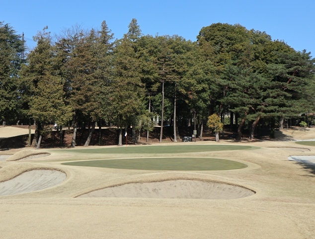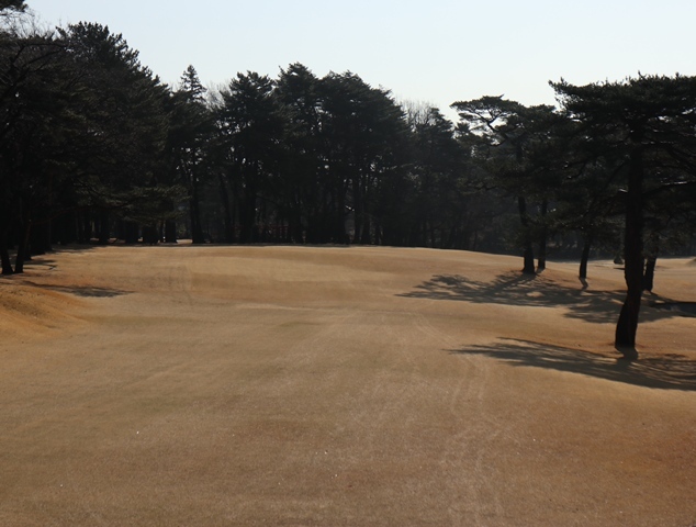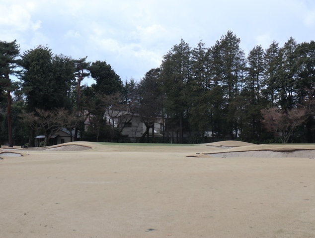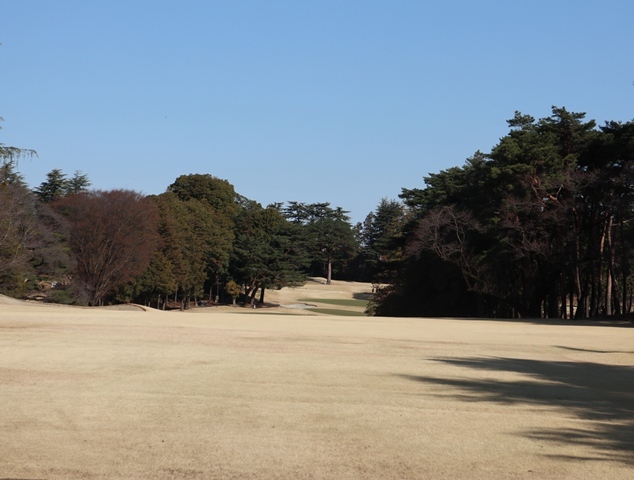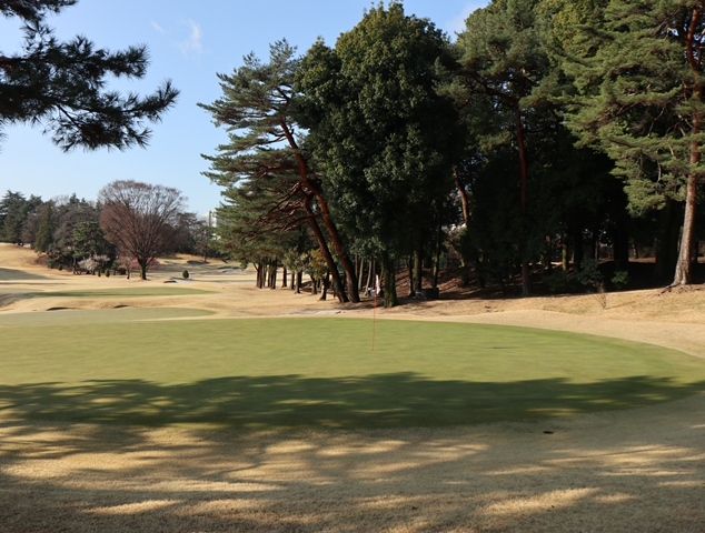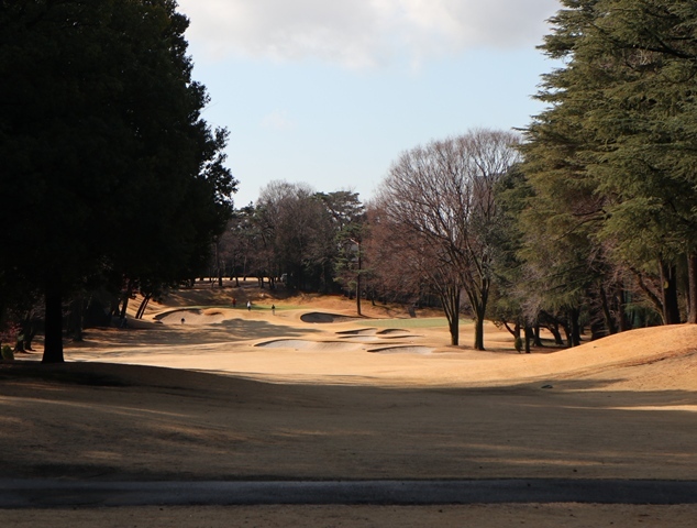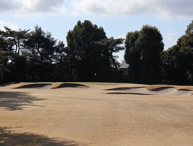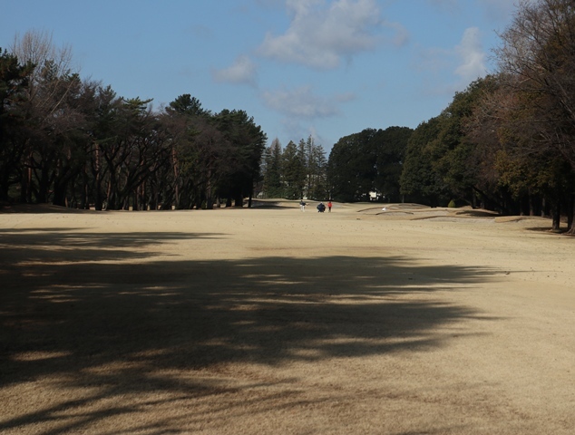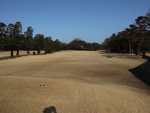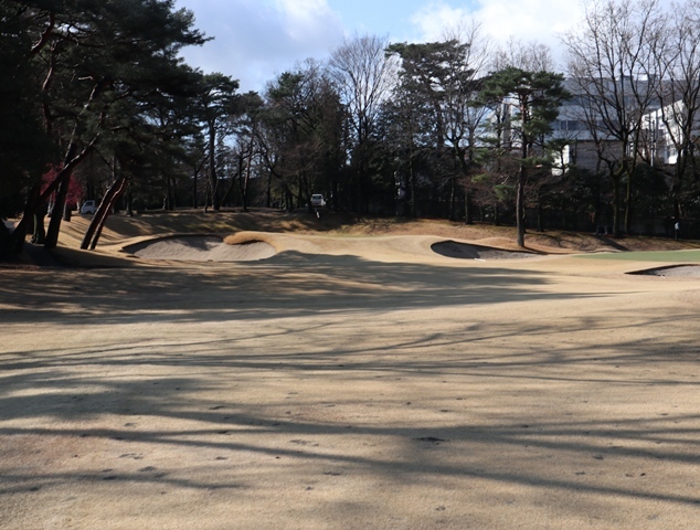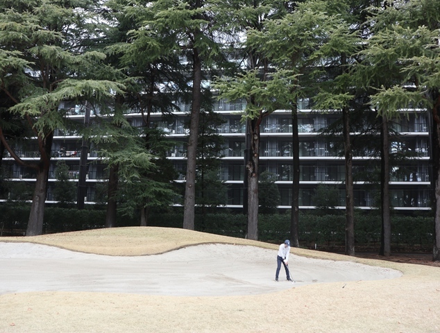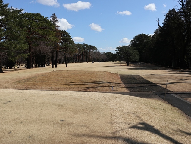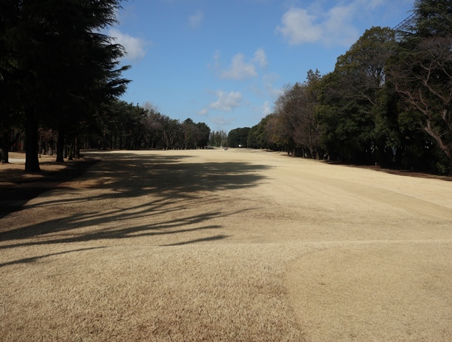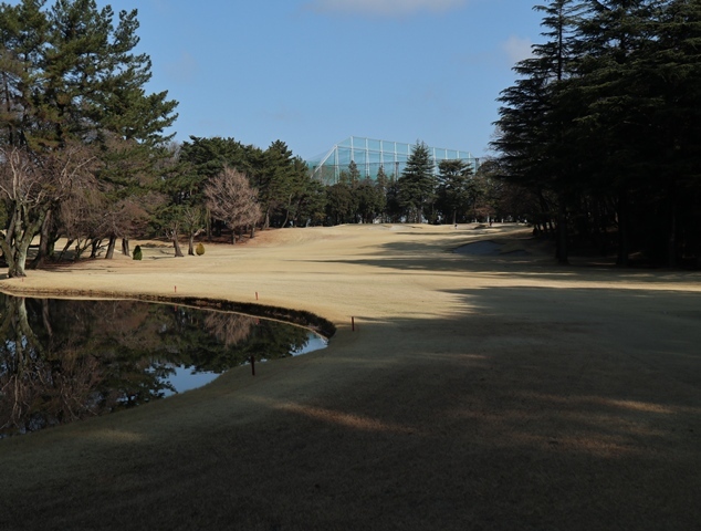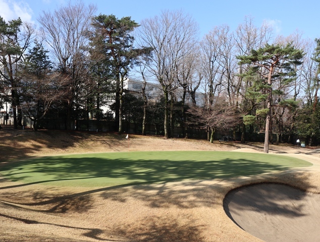 両サイドに大きな木々がありますが、その向こう側にはマンションもあり不思議な景色の都会のゴルフ場になっております。