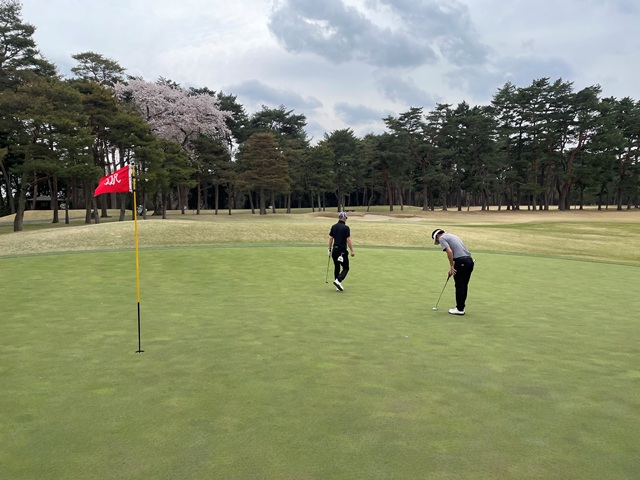 桜が美しい4月上旬に、メンバーのKさんとのプレーになります。