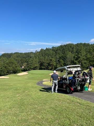 二日目はMシン幹事のホームコース、諏訪湖カントリークラブでのプレーです。標高は1000m越えで涼しさは変わりませんが、この日は台風の影響なのかいつも以上に湿度が高かったようです。また、アップダウンがけっこうあるコースとなっています。